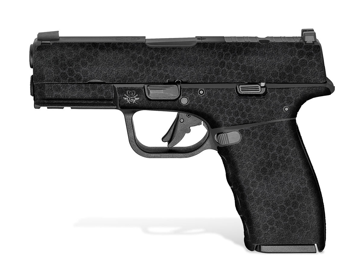Springfield Hellcat Pro Decal Grip. Features an amazing rubberized, textured grip surface for a better, and more comfortable hold of your 3.7″ Hellcat Pro. Cover just the frame or entire gun. Digital Snakeskin design.