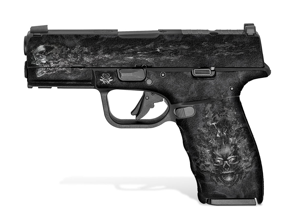 Springfield Hellcat Pro Decal Grip. Features an amazing rubberized, textured grip surface for a better, and more comfortable hold of your 3.7″ Hellcat Pro. Cover just the frame or entire gun. Nitro design.