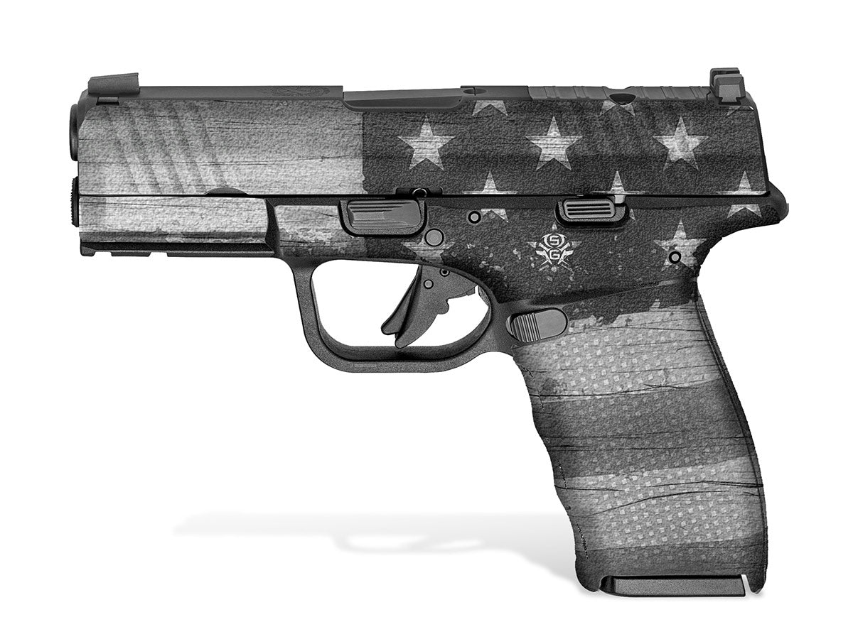 Springfield Hellcat Pro Decal Grip. Features an amazing rubberized, textured grip surface for a better, and more comfortable hold of your 3.7″ Hellcat Pro. Cover just the frame or entire gun. Subdued design.