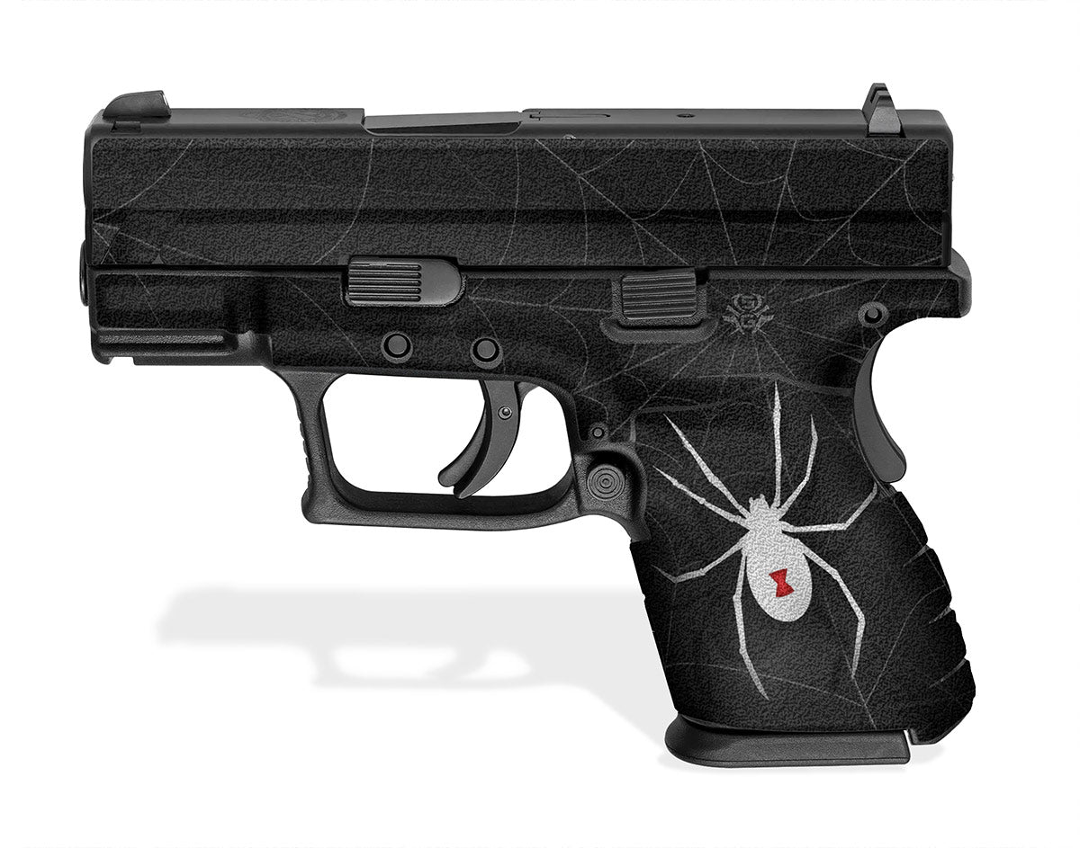 Springfield XD Decal Grip for 3″ 9mm and 40 cal. sub-compact models. Features an amazing rubberized, textured grip surface for a better, and more comfortable hold of your 3″ XD. Cover just the frame or entire gun. Easy, do-it-yourself installation. Black Widow design.