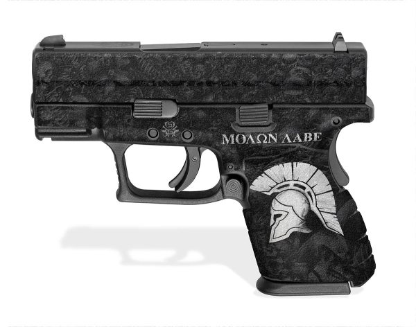 Springfield XD Decal Grip for 3″ 9mm and 40 cal. sub-compact models. Features an amazing rubberized, textured grip surface for a better, and more comfortable hold of the 3″ XD. Cover just the frame or entire gun. Easy, do-it-yourself installation. Sparta / Molon Labe design.