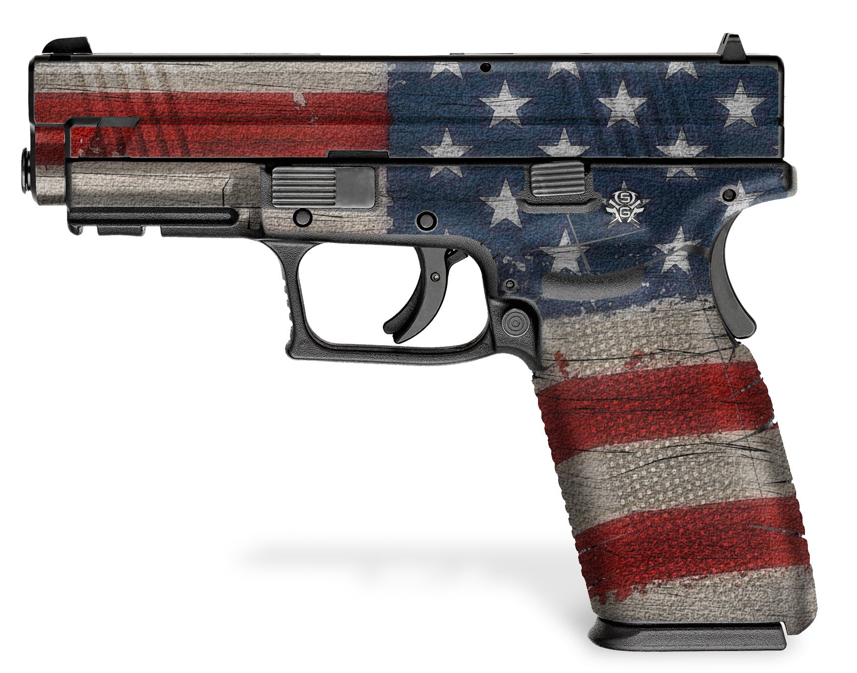 Our decal grips feature an amazing rubber-like, textured grip surface for a better, and more comfortable hold of the 4″ XD. Cover just the frame or entire gun. Easy, do-it-yourself installation. Old Glory design.