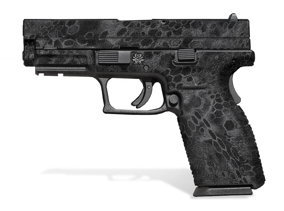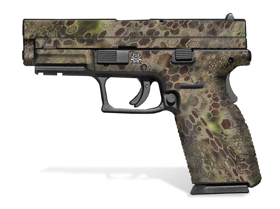 Springfield XD Decal Grip for the 4″ 9mm and .40 models. Also known as “Legacy Series XD“.  Our decal grips feature an amazing rubber-like, textured grip surface for a better, and more comfortable hold of the 4″ XD. Cover just the frame or entire gun. Easy, do-it-yourself installation. Cryptic Camo design.