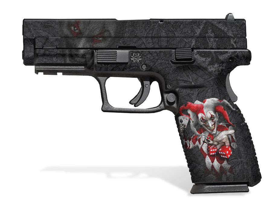 Springfield XD Decal Grip for the 4″ 9mm and .40 models. Also known as “Legacy Series XD“.  Our decal grips feature an amazing rubber-like, textured grip surface for a better, and more comfortable hold of the 4″ XD. Cover just the frame or entire gun. Easy, do-it-yourself installation. The Joker design.