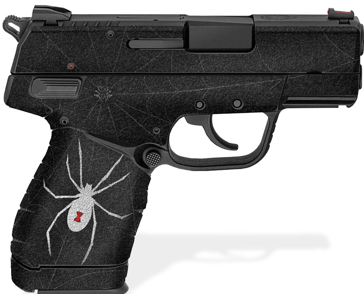 Springfield XD-E Decal Grip for 3.3″ models. Features an amazing rubberized, textured grip surface for a better, and more comfortable hold of your XD-E. Cover just the frame or entire gun. Easy, do-it-yourself installation. Black Widow design.