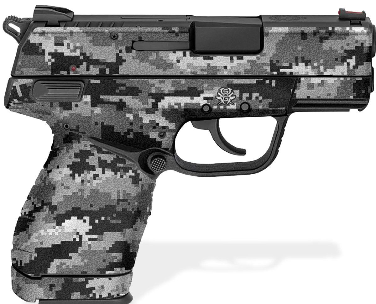 Springfield XD-E Decal Grip for 3.3″ models. Features an amazing rubberized, textured grip surface for a better, and more comfortable hold of your XD-E. Cover just the frame or entire gun. Easy, do-it-yourself installation. Digital Camo design.