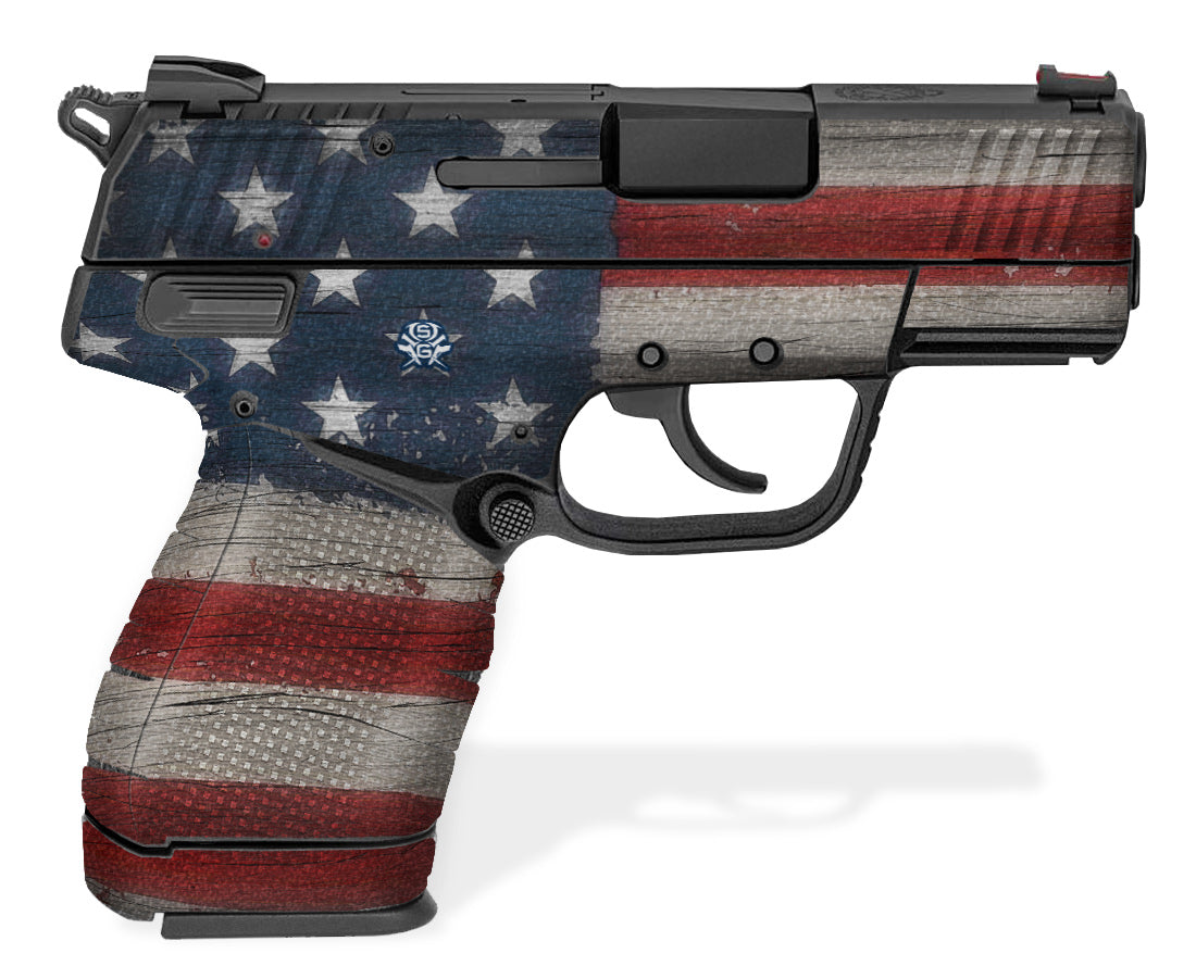 Springfield XD-E Decal Grip for 3.3″ models. Features an amazing rubberized, textured grip surface for a better, and more comfortable hold of your XD-E. Cover just the frame or entire gun. Easy, do-it-yourself installation. Old Glory design.