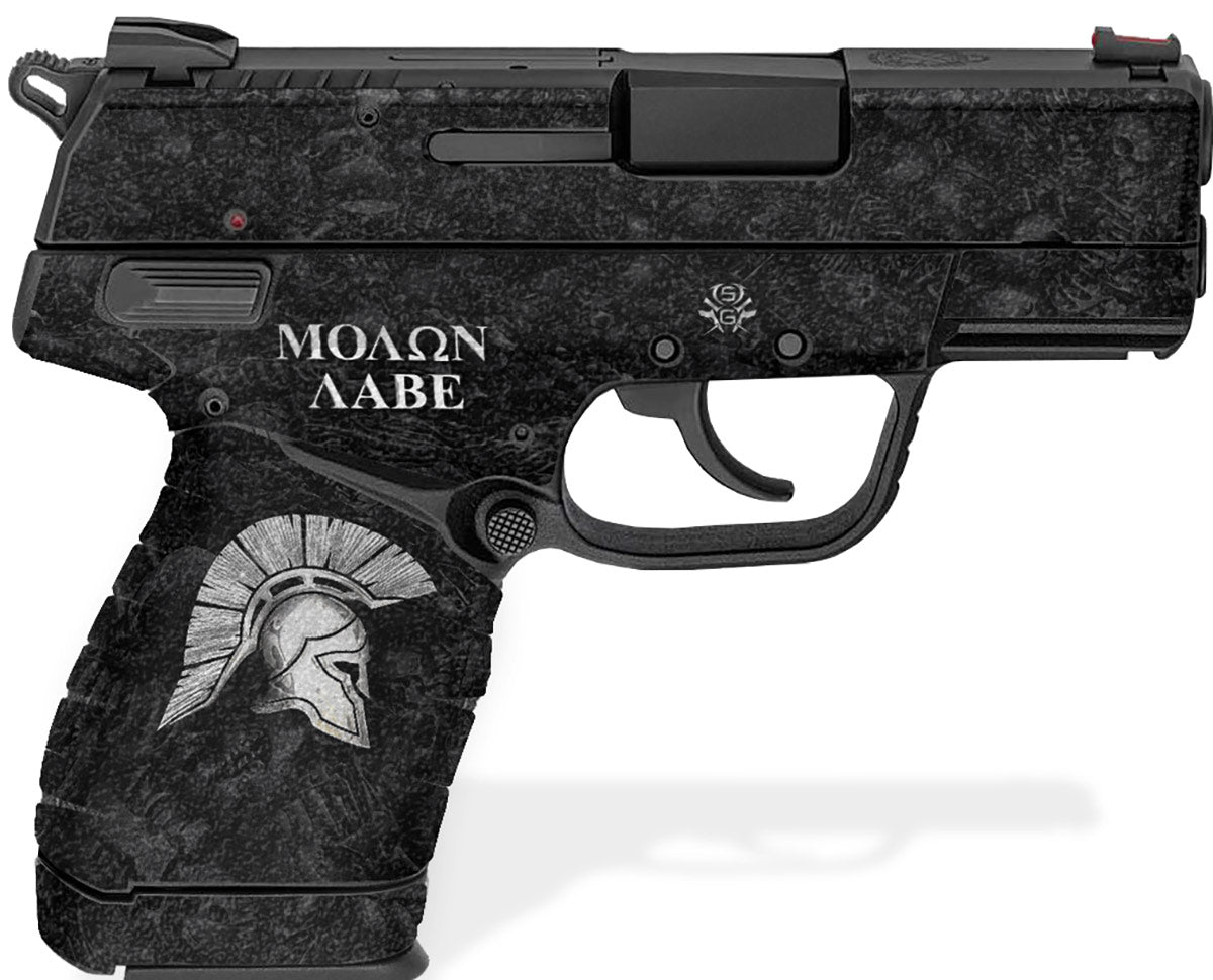 Springfield XD-E Decal Grip for 3.3″ models. Features an amazing rubberized, textured grip surface for a better, and more comfortable hold of your XD-E. Cover just the frame or entire gun. Easy, do-it-yourself installation. Sparta / Molon Labe design.