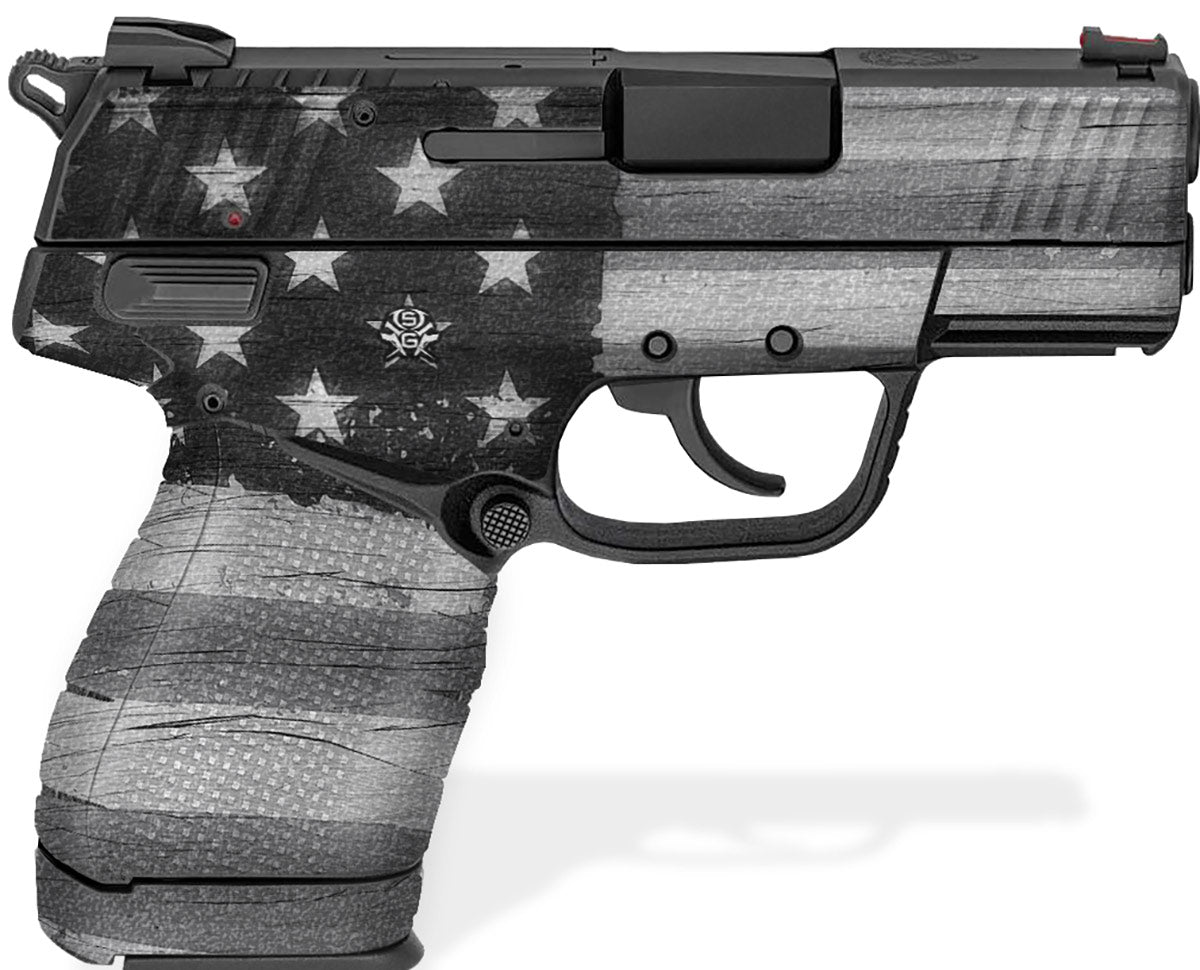 Springfield XD-E Decal Grip for 3.3″ models. Features an amazing rubberized, textured grip surface for a better, and more comfortable hold of your XD-E.  Cover just the frame or entire gun. Easy, do-it-yourself installation. Subdued design.