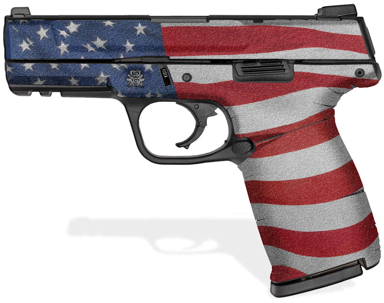 Showgun decal grips are manufactured with a rubberized, textured vinyl, and 3M adhesive specifically formulated to mold into textured surfaces and stay on through harsh environments and conditions. Cover just the frame or apply it to the slide as well. The rubberized feel is not only non-slip, but it won’t chaff or irritate your skin. Stars & Stripes design available here, templated to fit over 40 gun models (see below).