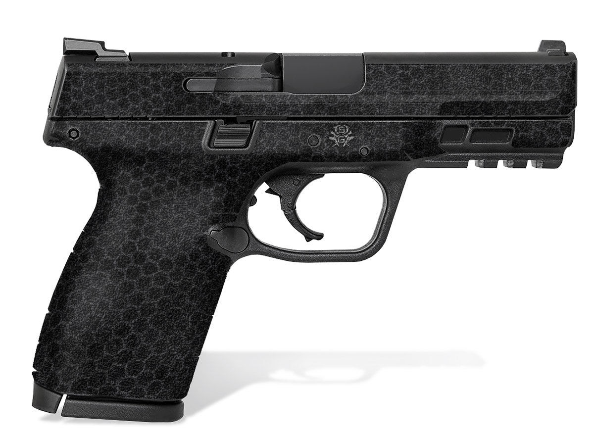Decal Grip for Smith & Wesson M&P 9mm/.40 M2.0 4″ Compact. Features an amazing rubberized, textured grip surface for better grip and more control. Cover just the frame or apply it to the slide as well. Digital Snakeskin design.