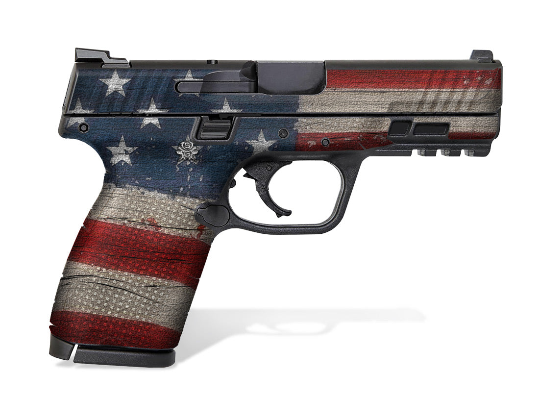 Decal Grip for Smith & Wesson M&P 9mm/.40 M2.0 4″ Compact. Features an amazing rubberized, textured grip surface for better grip and more control. Cover just the frame or apply it to the slide as well. Old Glory design.