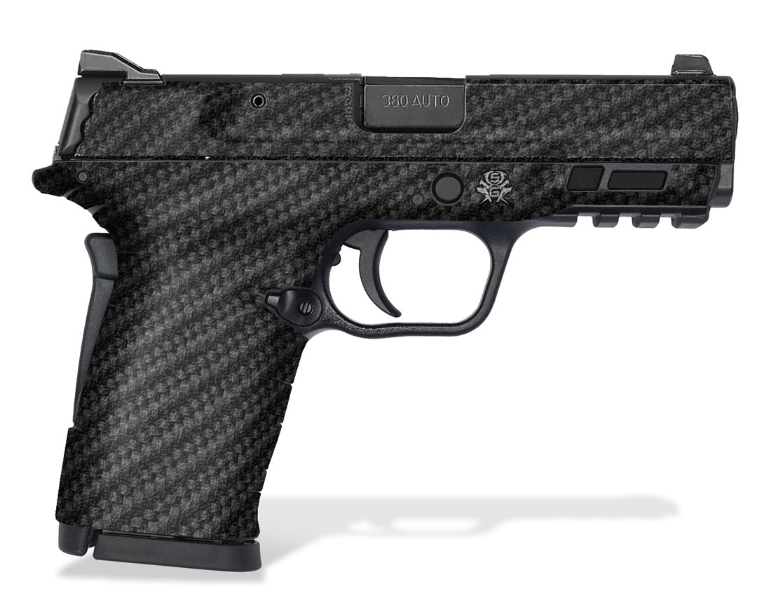 Smith & Wesson M&P Shield EZ M2.0 .380 Decal Grip – Manufactured with a rubberized, textured, non-slip vinyl that gives you a firm secure grip and won’t chaff or irritate your skin. Made with 3M adhesive specially formulated to mold into textured surfaces and stay on through harsh conditions. Cover just the frame of the micro-compact EZ .380 or apply it to the slide as well. Carbon Fiber design.