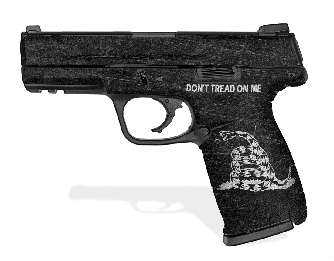 Decal Grip for S&W SD9, SD9VE, SD40 & SD40VE. Features an amazing rubber-like, textured grip surface for better grip and more control. Cover just the frame or apply it to the slide as well. Don’t Tread On Me design.