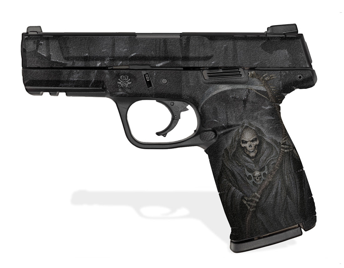 Decal Grip for S&W SD9, SD9VE, SD40 & SD40VE. Features an amazing rubber-like, textured grip surface for better grip and more control. Cover just the frame or apply it to the slide as well. Grim Reaper design.